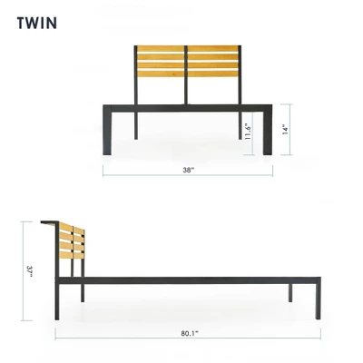 Kasi Metal Platform Bed With Panel Headboard Shelf Black – Mellow