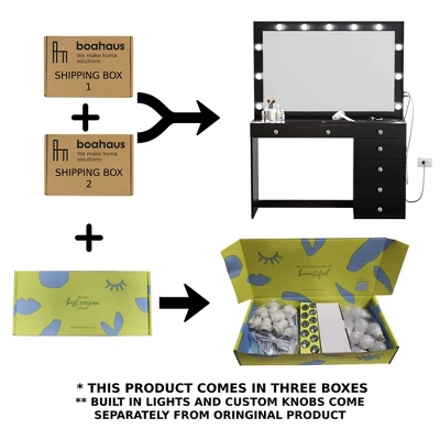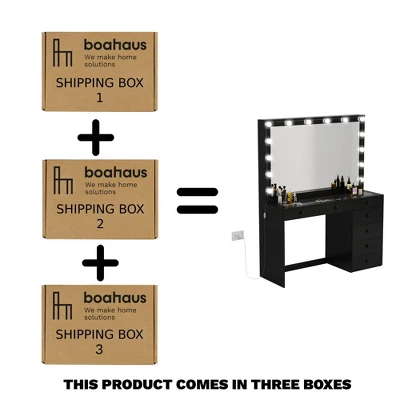 Introducing the Serena Black Vanity Makeup Desk by Boahaus, the perfect addition to your bedroom. This inspirational makeup table with storage piece is designed to bring out the beauty within you.