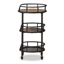 Bristol Rustic Industrial Style Metal And Wood Mobile Serving Cart – Brown – Baxton Studio