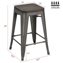 Yaheetech 24 Inches Height Backless Stackable Metal Counter Bar Stool, Set Of 4