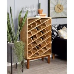 Michelle Wine Rack With Glass Hanger Metal/Antique Bronze/Teak – Winsome