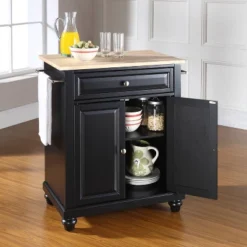 Cambridge Wood Top Portable Kitchen Island/Cart Black/Natural – Crosley