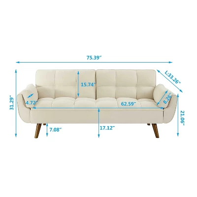 - SPACIOUS AND COMFORTABLE: Our loveseat will be a favorite spot for leisure in your home. It is 75.4 inches wide and spacious enough for 2 or 3 people. The thick spring foam cushion and breathable fabric create a soft and supportive base and backrest, allowing you to rest and entertain throughout the day without discomfort.