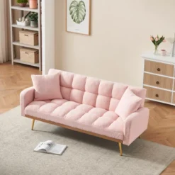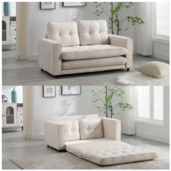 Best Choice Products Convertible Living Room Linen Fabric Tufted Split-Back Futon Sofa W/ 2 Pillows