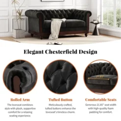 55 In. Wide Mid-Century Channel Tufted Velvet 2-Seater Sofa Couch Loveseat – Morden Fort