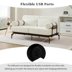 80.5″ Modern Upholstered Sofa With Golden Metal Legs And 4 Pillows-ModernLuxe