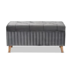 Hanley Velvet Fabric Upholstered And Wood Storage Ottoman – Baxton Studio