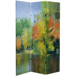 6″ Double Sided Nature's Embrace Canvas Room Divider Green – Oriental Furniture