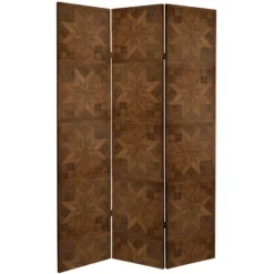 6″ Double Sided Walnut Wood Pattern Canvas Room Divider Brown – Oriental Furniture