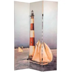 6″ Double Sided Lighthouses Canvas Room Divider – Oriental Furniture