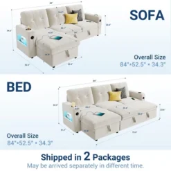CENGHU 3 Fold Sofa, Convertible Sleeper Sofa Bed, Pull Out Couch Sofa Bed For Living Room Bedroom