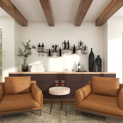Metal Geometric 7 Bottle Wall Wine Rack With 5 Glass Holder Slots Black - Olivia & May -Baxton Studio Sale Shop GUEST 65fff711 5d0a 4cde b573 3357b1ba74ce