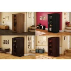 This storage cabinet is both stylish and practical, perfect for all storage needs. It works well in any room, whether it is the office, basement, or even the garage.This armoire is made in North America with non-toxic laminated particleboard and it meets or exceeds North American safety standards.