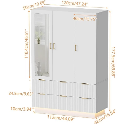 - Modern Armoire Wardrobe Closet: This wardrobe has three doors and a mirror. It looks modern but also has a wave-retro style. The metal handles and lights make it look elegant and fashionable. You can put it in your bedroom or living room. The mirror is also useful because you can use it to check your makeup and outfit whenever you want.