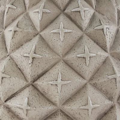- Pineapple sculpture has a stone texture, antiqued in shades of white and gray, and provides a sturdy table base