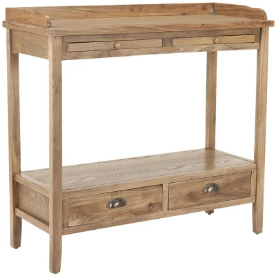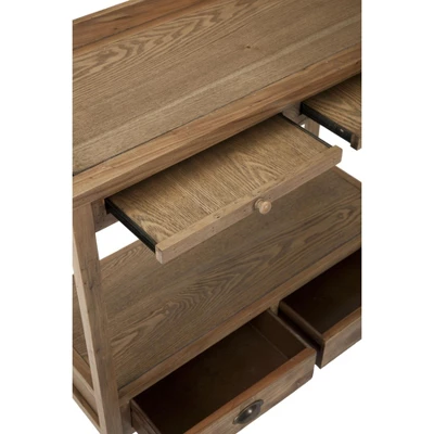 Marrying the functionality of a secretary desk with that of a traditional console, this Peter Console is a portrait of country cottage chic. Peters pull out writing surfaces, lower shelf, and two bottom drawers prove it a master of both form and function, while a weathered oak finish makes Peter absolutely timeless.