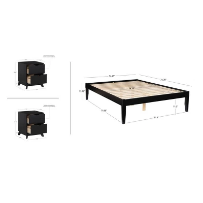 - Includes: 2 Nightstands, 1 Bed (Frame, and Hardware)