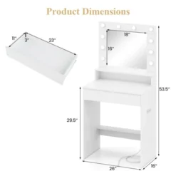 Costway Vanity Desk With Mirror And Lights With 3 Light Modes & Adjustable Brightness White