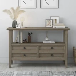 Hampshire Solid Wood Wide TV Stand For TVs Up To 80″ Dark Brown – WyndenHall