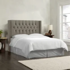 Clean lines and lustrous nailheads give this upholstered bed an air of sophistication. Available in a mix of bold color options, this bed blends seamlessly into nearly any style interior. Includes upholstered headboard, upholstered side rails, and standard metal bed frame.