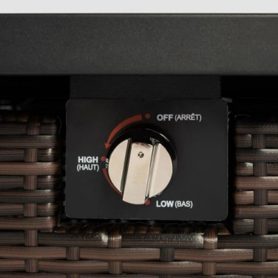 Stylish and Functional: Elevate your outdoor space with the 28-inch Wicker Square Fire Pit Table, featuring a sleek black-brown color and elegant rattan construction.Premium Quality: The Rattan Fire Pit Table is designed with a PE wicker housing and a steel tabletop, providing a sturdy and reliable outdoor heating solution.Complete Package: The package includes rocks, a gas regulator with hose, but does not include a rain cover or glass windshield. Note: This table is not suitable for natural gas use.