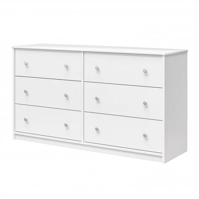 Add more storage to your bedroom or guest room with a Wide 6 Drawer Dresser. Available in several neutral finishes on laminated particleboard, the wide dresser adds a classic touch to your room that can easily fit into your existing décor. The 6 spacious drawers allow plenty of storage for your folded t-shirts, pants, sweaters, and even coats and extra linens. Display photos, decorations or jewelry on the large top surface. The linen look finish on the inside of every drawer keeps your clothes from snagging on raw edges. A wall anchor kit is included with the Dresser to prevent tipping injuries and keep your family safe. The 6 Drawer Dresser ships flat to your door and requires 2 adults to assemble. Once assembled, the Dresser measures to be 29.69” H x 53.54” W x 14.69” D.