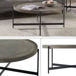 Alaterre Furniture 42″ Brookline Round Coffee Table With X-Frame Metal Base