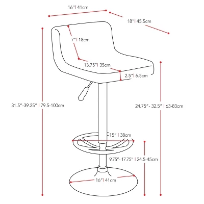 Enhance your kitchen decor with this beautiful pair of low-back adjustable bar stools. The unique padded style and attractive metal base give them a modern and inviting look that matches any decor. The swivel stools are generously padded for your comfort so that you can fully enjoy evenings at your kitchen island with family or friends. The gas spring is easy to access and allows you to adjust the stool to the desired counter height. Product Dimensions: 39″H x 16″W x 18″D
