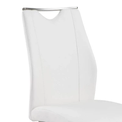 The Armen Living Evelyn contemporary dining chair is a stylish piece sure to enhance the aesthetic of the modern household. This beautiful chair features a brushed stainless-steel frame that assures an unmatched degree of durability without compromising on style. The Evelyn’s ergonomic back and seat are upholstered with high-grade faux leather sure to provide an exceptional degree of comfort. The Evelyn dining chairs are ideal when paired with the complementary dark sonata base and clear glass topped Evelyn dining table. This piece provides both versatile style and comfort with a contemporary and modern design that can easily be integrated into your home’s current décor. The plush padded seat with high-density foam will provide you with all-day comfort. The cushion high back is ideal for posture alignment and an unmatched support for days on end. The foundation of the product is supported by stainless steel for a chic and stylish aesthetic without comprising the practicality and functionality of this item. We stand by the quality, the craftsmanship, and the integrity of our product by offering a 1-year warranty for all our products. We want our customers to enjoy our product and we will always be there to help with our top-notch customer service support. Product Dimensions: 23″W x 17″ D x 39″H SH: 19″