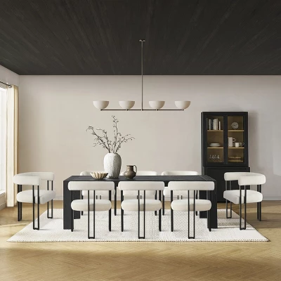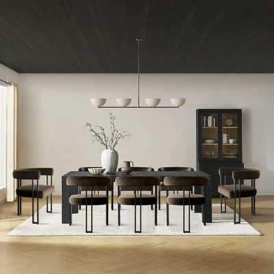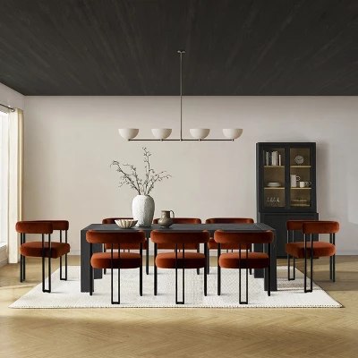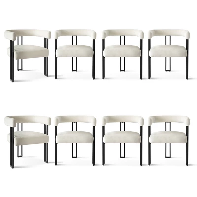 Upgrade your dining space with this set of 8 modern velvet dining chairs, designed for both style and comfort. Featuring a sleek, curved silhouette with integrated armrests, these chairs provide ergonomic support while making a bold statement in any dining room, kitchen, or contemporary living space.The plush velvet upholstery offers a soft, luxurious feel, while the thick padded seat ensures all-day comfort. Supported by sturdy black metal legs, these chairs are not only durable and stable but also add a modern industrial touch to your décor. The low-profile 28-inch height allows them to slide easily under most dining tables, keeping your space tidy and functional.With six stunning color options, you can easily match these chairs to your personal style—whether you prefer the timeless elegance of beige, the richness of olive green, or the bold sophistication of midnight blue. Perfect for formal dining settings, casual breakfasts, or even as stylish accent chairs, this 8-piece set is ideal for larger households or those who love entertaining guests.