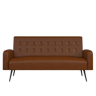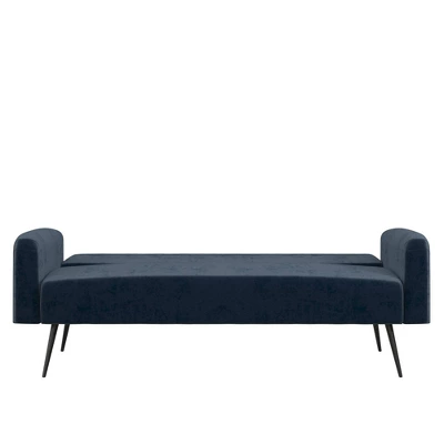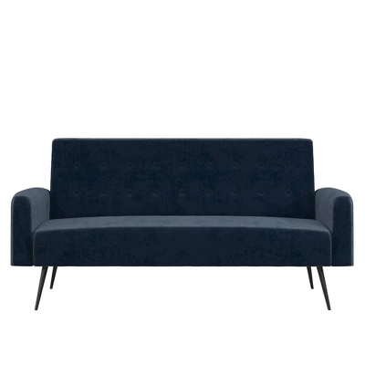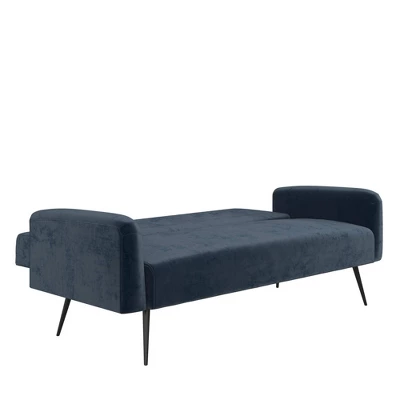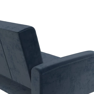 The Novogratz Stevie Futon is the perfect modern sofa bed for those who want practicality without compromising on style. Designed with rounded edges on the armrests, back and seat, the Stevie also features some button tufted detailing in the soft velvet upholstery. This convertible sofa bed is constructed with a strong plywood frame to ensure that it will last you through university and make it into your first apartment. To make this futon even better, the Novogratz Stevie Futon is built with a multi-functional design that allows you to recline the backrest between three position with an easy push or pull. This means you get to choose if you want your futon to be in a sitting position for long hours of studying, in a lounging position for a weekend long movie marathon, or in a sleeping position for hosting your friends overnight during the weekend. Available in multiple trendy colors, the Novogratz Stevie Futon is the ideal option to add a pop of style to your living room, home office or guest bedroom.