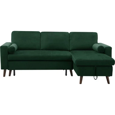 This sectional sofa features a reversible chaise with spacious storage space and a pull-out sleeper, making it a versatile and space-saving addition to any home.