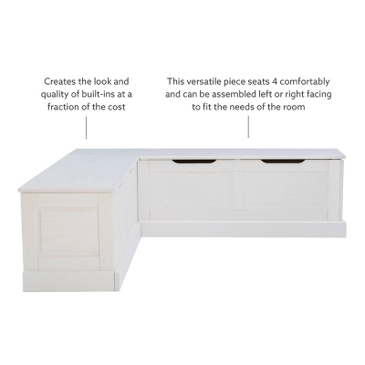 Create a cozy corner for your home with the Tobin Backless Corner Nook in White, designed to bring comfort and style to any kitchen or dining space. Whether you’re sipping your morning coffee or enjoying a casual lunch with friends, this charming nook offers the perfect spot to unwind. Its timeless cottage and farmhouse aesthetic pairs effortlessly with round, rectangle, or square tables, making it a versatile addition to your home. The backless design provides ultimate flexibility, allowing you to adjust the seating arrangement to suit your space and needs, while the solid pine construction ensures long-lasting durability.