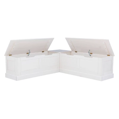 Not only does this nook offer a stylish seating solution, but it also adds a touch of practicality with its hidden storage. Each bench seat opens up to reveal ample space for storing extra placemats, linens, or seasonal decorations, keeping your space clutter-free. The soft-close hinges ensure quiet, smooth access every time, and with a sturdy weight capacity of 600 lbs, it’s perfect for gatherings of all sizes. Conveniently packaged in one box, this nook requires minimal assembly, making it a hassle-free addition to any home. Cushions are sold separately, allowing you to personalize the comfort of your seating area. Linon Home Décor is dedicated to offering high-quality, stylish furniture that enhances the beauty and functionality of your home, making it a place of comfort and elegance.