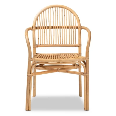 Renew the adoration for your dining space with the remarkable allure of the Tugera dining chair. Made in Indonesia, this chair is handcrafted by skilled artisans with natural rattan. The round backrest is interlaid with slim rattan rods for a smooth embrace, while the pronounced armrest offers convenient comfort. The Tugera will arrive fully assembled and features angled legs connected by a crisscross base for excellent stability and support. Encapsulating the allure of an exotic retreat, the Tugera dining chair elevates the mood of any occasion.