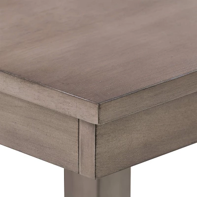 No matter the meal or occasion the dining table is the center of it all. With sturdy rubberwood legs finished with a classic gray wash, this counter height table is the perfect addition to any dining space. The lower shelf is a great place to store napkins, placemats, or decor when not in use. This tables clean-lined silhouette and understated design can easily transition between classic and contemporary aesthetics.