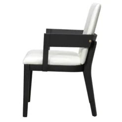This set of velvet arm chairs is designed to make a bold and modern statement in any space. With their comfortable width, they are perfectly suitable for dining, striking the ideal balance between being substantial enough for a satisfying meal and not overly cumbersome at the table. Standing at a height of 28″, the low-profile design effortlessly slides under various tables, ensuring that your dining area remains tidy and spacious.These chairs boast a sleek silhouette in sophisticated black and velvet tones, adding a touch of elegance to any room. The premium solid metal frame, combined with a sturdy wood seat frame, ensures durability and reliability. The chair’s design is defined by clean lines and beautiful curves, while the matte black frame adds interest from any angle and contrasts against the white velour, creating a comfortable and stylish dining chair. Its three legs make it a standout choice in terms of both aesthetics and stability.Experience the perfect combination of style and functionality with these velvet arm chairs, which are ideal for dining. They not only offer a comfortable seating option but also effortlessly complement various table designs. The chairs’ versatile design allows for easy sliding under tables, enabling you to maximize space in any room. The sleek black and white tones add a touch of sophistication, while the solid metal frame and sturdy wood seat frame guarantee long-lasting performance. Upgrade your dining area with these modern and elegant arm chairs today!These chairs are available in six color options. Our favorite is the rich olive green, which adds a trendy and vibrant touch to any room. Additionally, the midnight blue and mink brown options exude an air of luxury and opulence, making them look quite expensive. Choose the color that best suits your personal style and complements your existing decor.