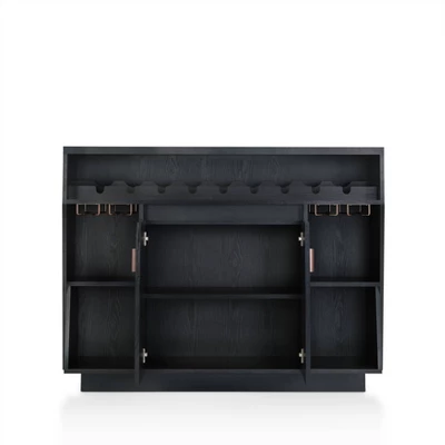 Inspire yourself and impress your family and friends with this gorgeous wine cabinet. This masterpiece is the best complement to your living space area. Display your best spirit bottles and glasses on the four open space shelves. Center cabinet features rose gold accent handles, hanging stemware storage and fit 9 bottles of wine. Everything you need to entertain your friends in style is right there at your fingertips.