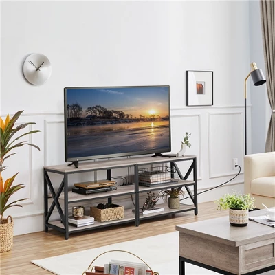 - 【Selected Materials for Long Accompany】Dedicating to time-winners, we have a rigid materials adoption and manufacturing standard. This storage TV cabinet with a power outlet is crafted out of CARB P2 particleboard and robust iron, ensuring a durable and body-harmless long-time service